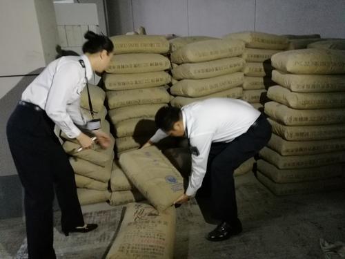 執(zhí)法人員現(xiàn)場(chǎng)查扣17.5噸假水泥