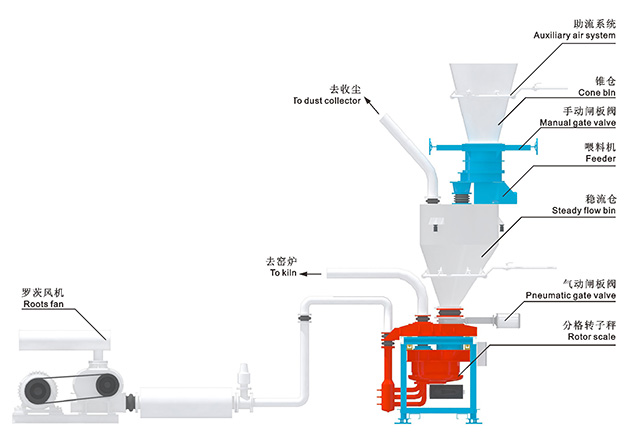 菲斯特形式轉(zhuǎn)子秤把傳統(tǒng)的煤粉定量喂煤、計(jì)量和鎖風(fēng)功能集成到一臺裝置中,專用于采用氣力輸送煤粉的定量喂煤。該系統(tǒng)噪音小、結(jié)構(gòu)緊湊、維護(hù)方便,已廣泛應(yīng)用于全球水泥行業(yè)的定量喂煤。