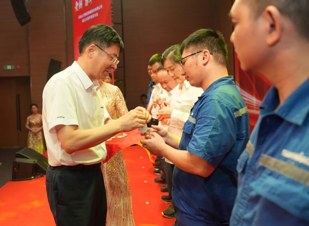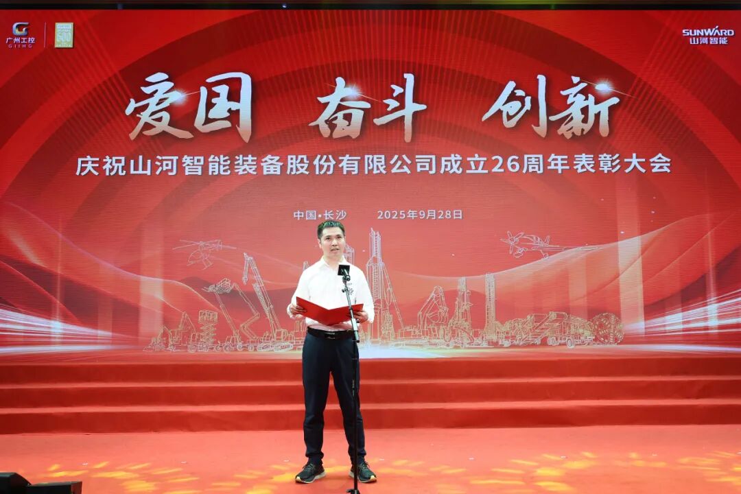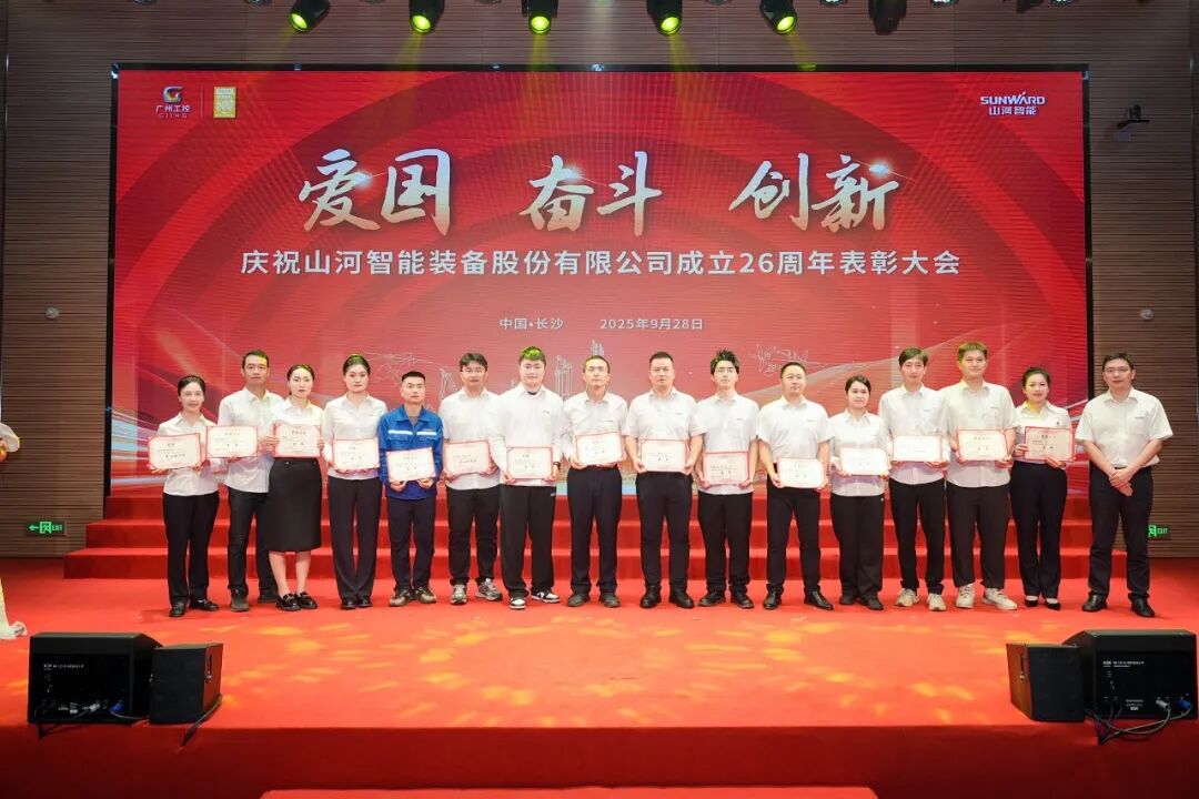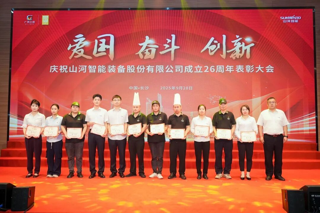大會(huì)在莊嚴(yán)的《國歌》聲中拉開帷幕。付向東為新晉十年老員工授勛。夏志宏等領(lǐng)導(dǎo)為在慶祝山河智能成立26周年系列活動(dòng)中獲獎(jiǎng)的單位和個(gè)人頒獎(jiǎng)。
