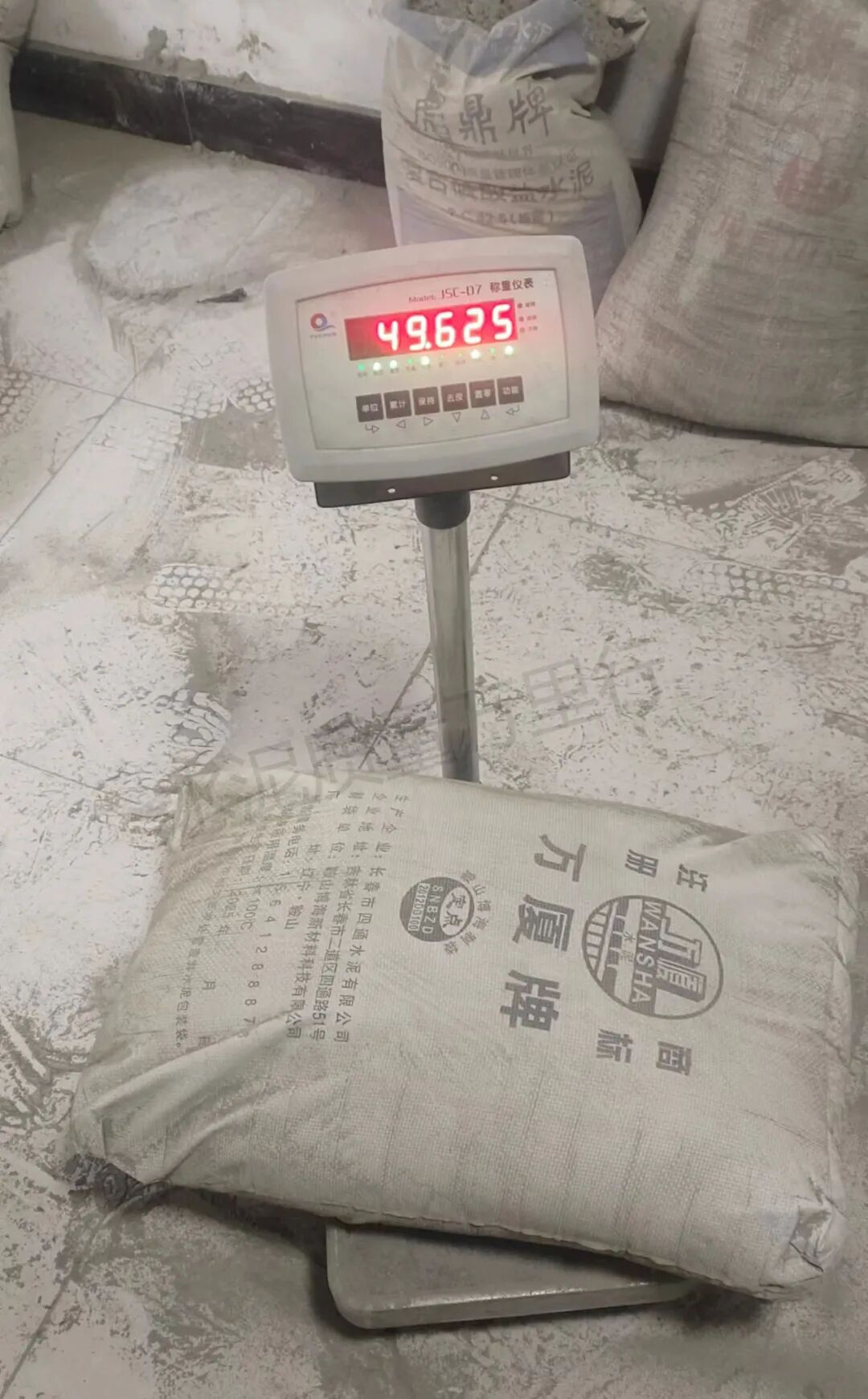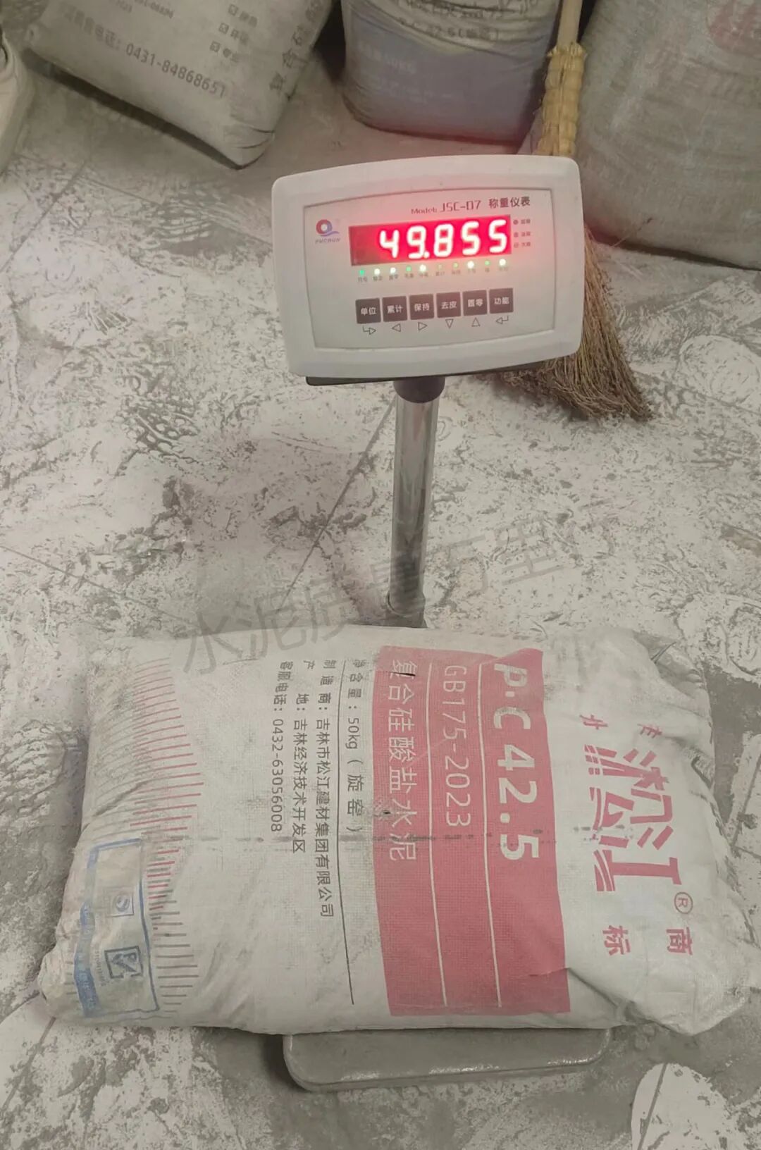 吉林省長春新興水泥廠“欣業(yè)”牌M32.5標稱50kg實測47.565kg、47.650kg、48.805kg、49.425kg、49.355kg