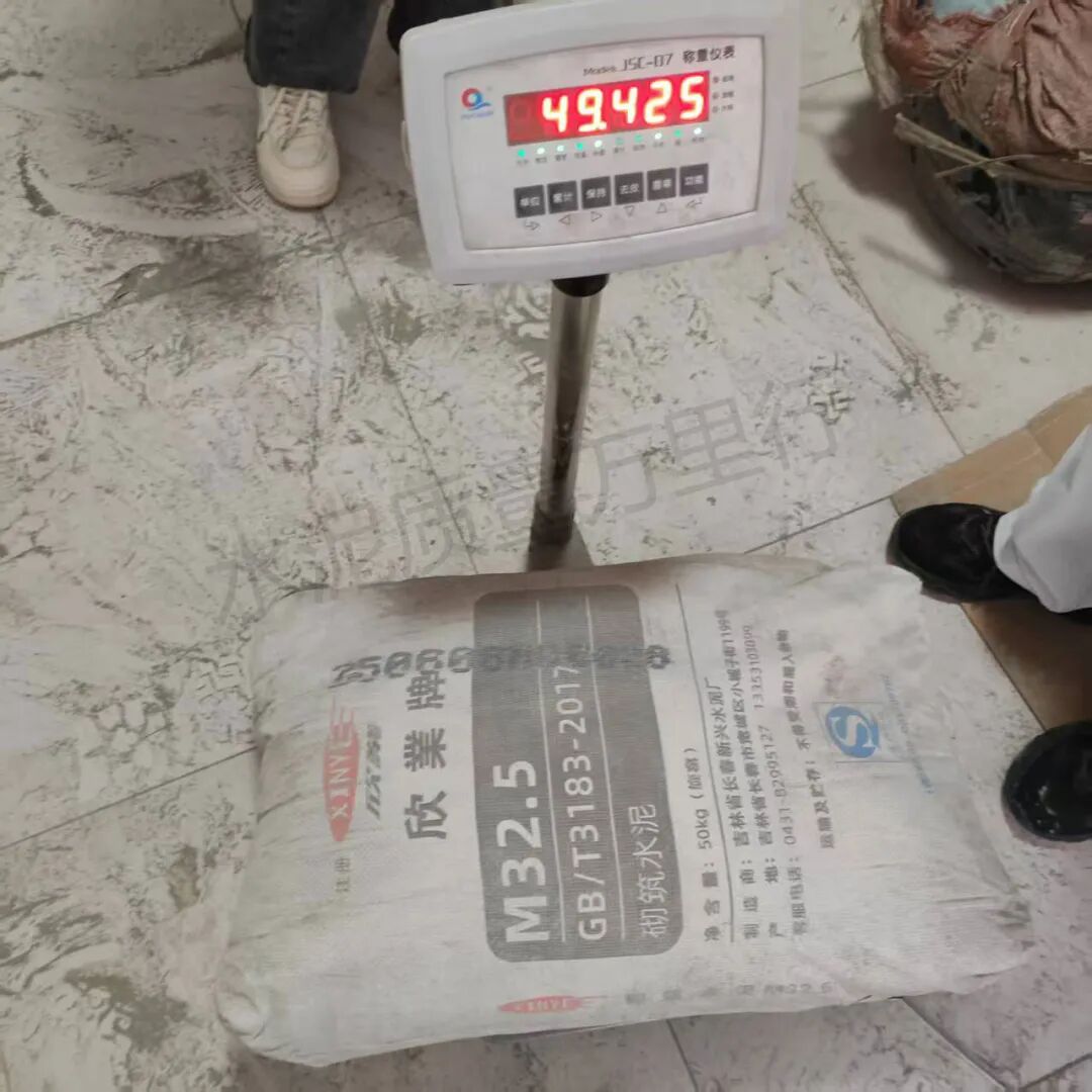 袋重偏差問題同樣不容忽視。7批次袋重不符合標準要求的產(chǎn)品涉及6家企業(yè)。其中吉林省長春新興水泥廠“欣業(yè)”牌M32.5標稱50kg,隨機抽查四包M32.5砌筑水泥,實測重量分別為47.565kg、47.650kg、48.805kg、49.425kg,平均袋重約48.36kg,與標準要求49.5kg相差約1.14kg。